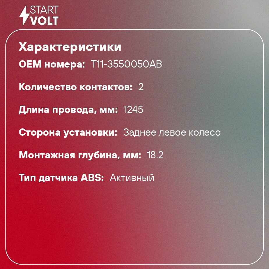Датчик Abs Chery Tiggo (T11) 06- 4 Х 2 Задний Левый Startvolt STARTVOLT арт. VSABS2707