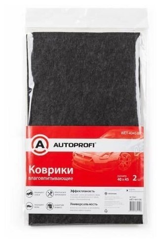 AUTOPROFI WET4045BK Коврики влаговпитывающие. AUTOPROFI, 40х45, комлект 2 шт,, чёрный, 1/0/100