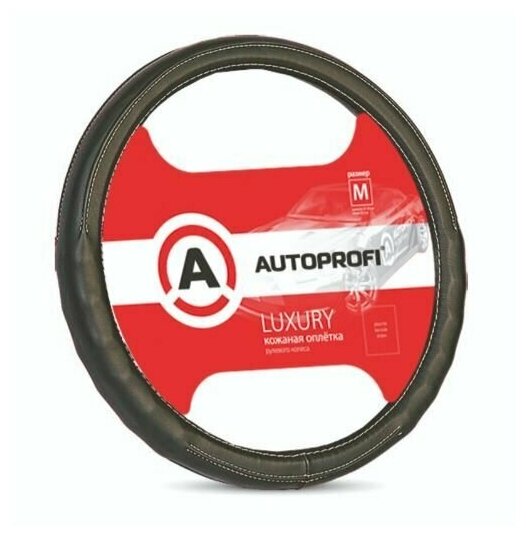 Кожаная оплётка руля AUTOPROFI AP-130 BK (M)