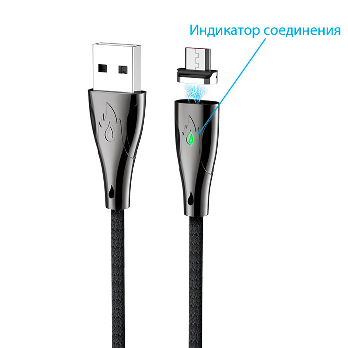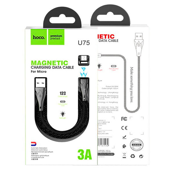 Купить Кабель USB HOCO U75 Blaze, USB - MicroUSB, 3A, 1.2 м, черный, на магните 909PS1VAJC