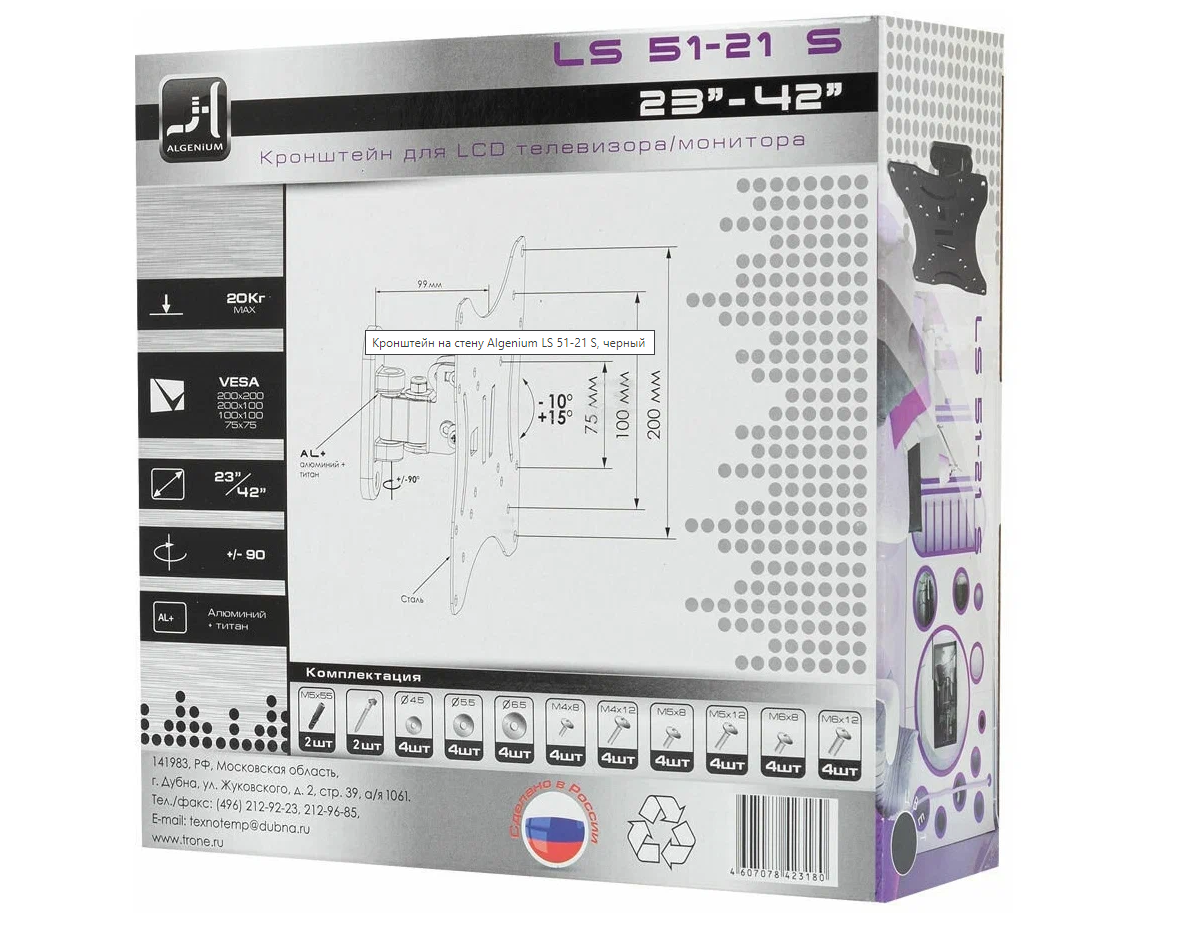 СохранитьКронштейн ALGENIUM LS 51-21 S для 23-42" чёрный . интересное: