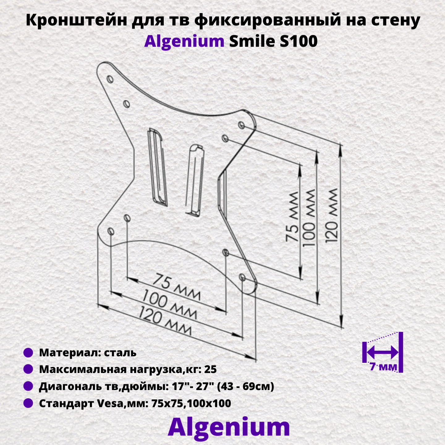 Кронштейн для телевизора на стену фиксированный с диагональю 17"-27" Algenium Smile S100,чёрный интересное: