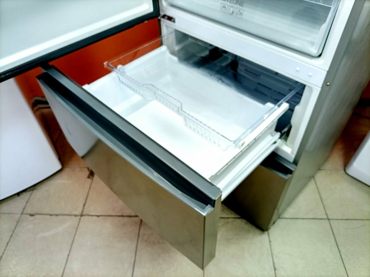 | Отзыв: | Цвет холодильника неброский, спокойный, отпечатков не видно на поверхности. Ручка для открывания двери холодильной камеры удобная, глубокая, но тоже требует привыкания, потому что в предыдущем была ручка снизу. В "Фреш боксе" храним овощи и фрукты, жаль что там нет разделителя. Бокс довольно вместительный. В "Моей зоне" храним масло, сыры, хлеб, рыбные полуфабрикаты (мясо не едим). Фото сделано в вечернее время, поэтому качество не очень, цвет холодильника золотистый, а не стальной. Обязательно проверяйте габариты всех проходов в квартире, учитывайте на пути проноса холодильника и толщину плинтуса, и наличие светильников, и картин на стенах. В нашем случае пришлось снимать входную дверь с петель и плафон с светильника. Холодильник через через входную дверь вошел с трудом, и грузчики хоть и старались, но умудрились как то поставить вмятину на самом видном месте на двери. На это место пришлось повесить магнитик. |