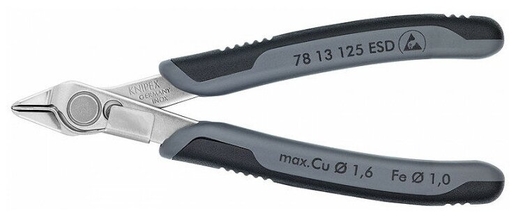 Бокорезы KNIPEX Electronic Super Knips® прецизионные ESD, зажим для проволоки, нерж., 125 мм, 2-комп антистатические ручки интересное: