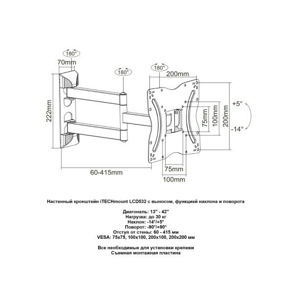 Купить Настенный кронштейн iTECHmount LCD532 с выносом, функцией наклона и поворота
