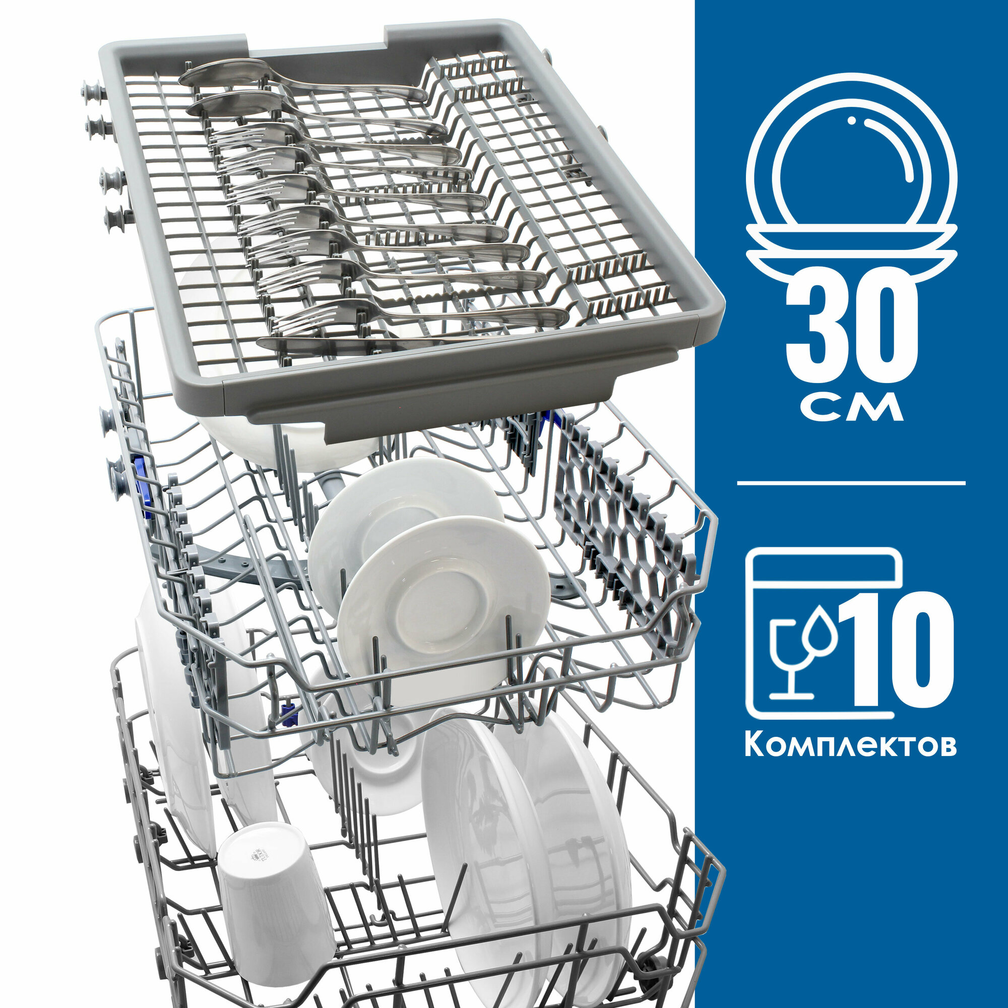Встраиваемая посудомоечная машина Ginzzu DC508, 45см, 10 комплектов, луч на полу, средство 3в1