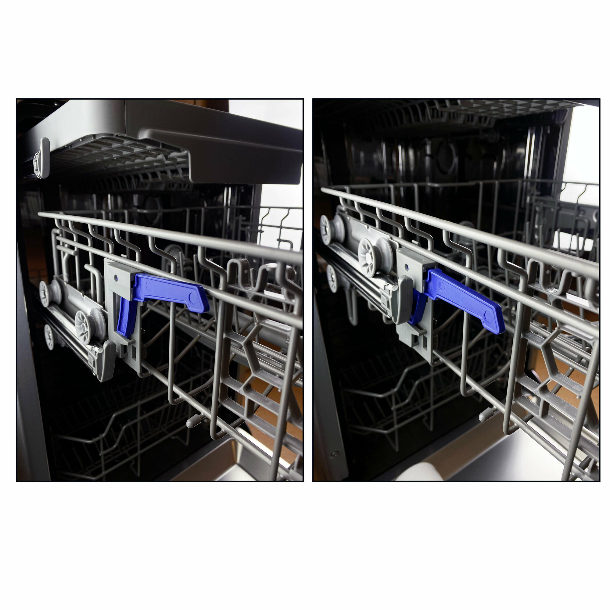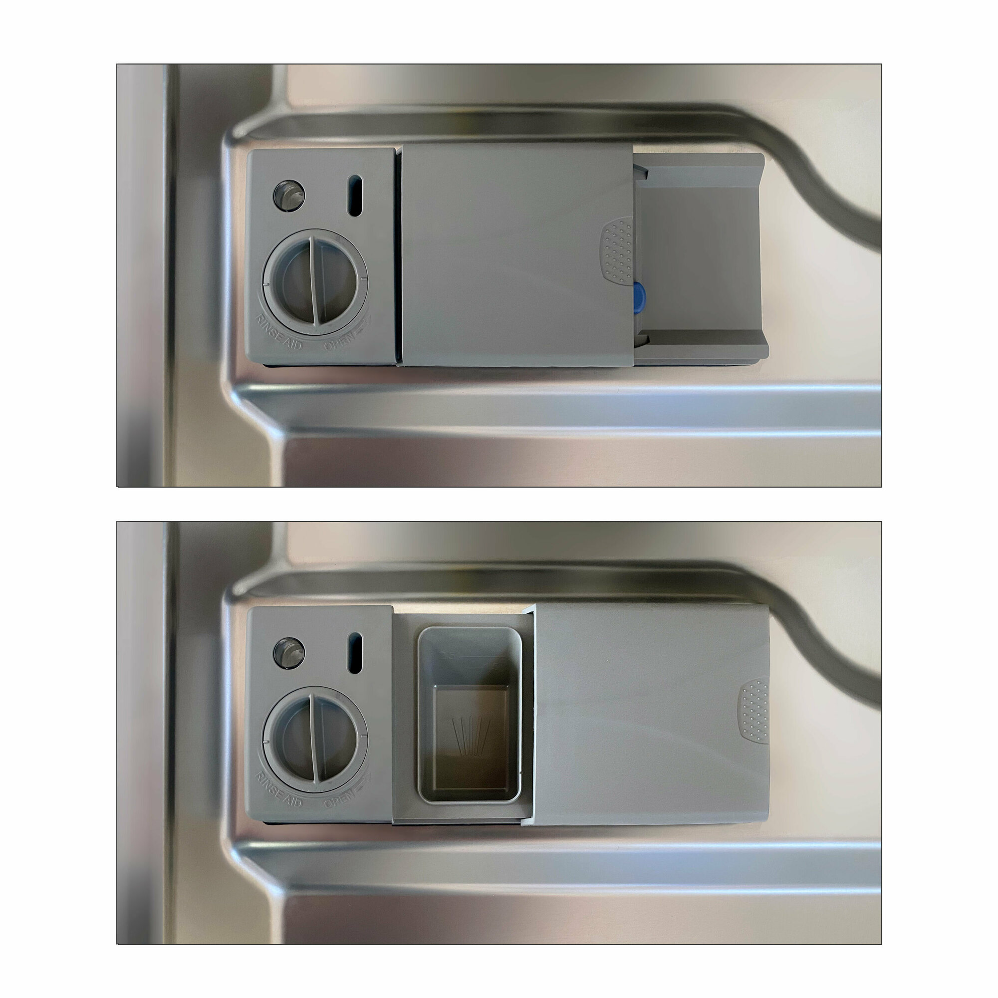 | Плюсы: | Нешумная, хорошая стоимость (сравнительно с моделями с аналогичным функционалом на рынке), отдельная «полочка» для приборов, луч на полу, простое и понятное управление, регулировка высоты средней корзины, индикаторы соли и ополаскивателя |