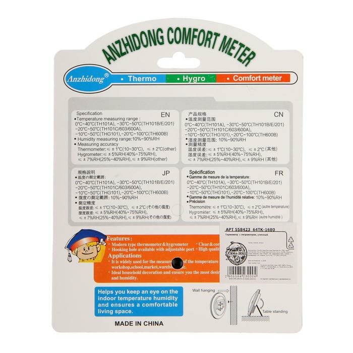 Термометр уличный, механический, гигрометр, круглый, металл 558423 интересное: