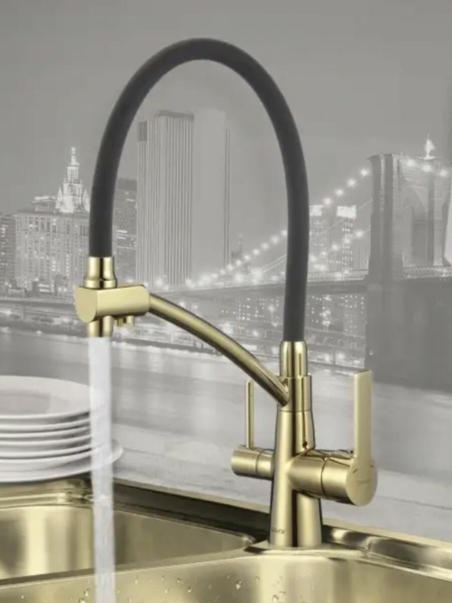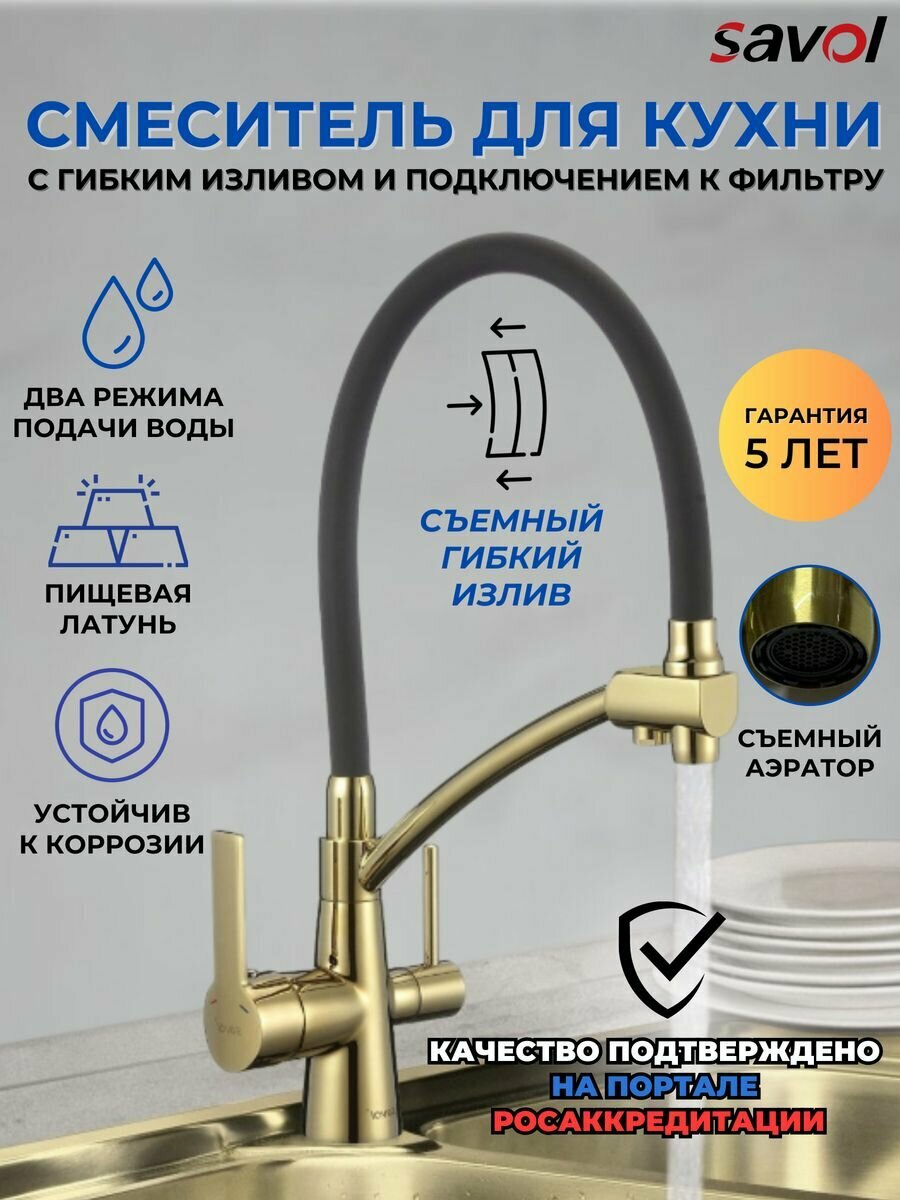 Смеситель Savol S-L1805B-04 для кухни, с подключением к фильтру, цвет золото / серый