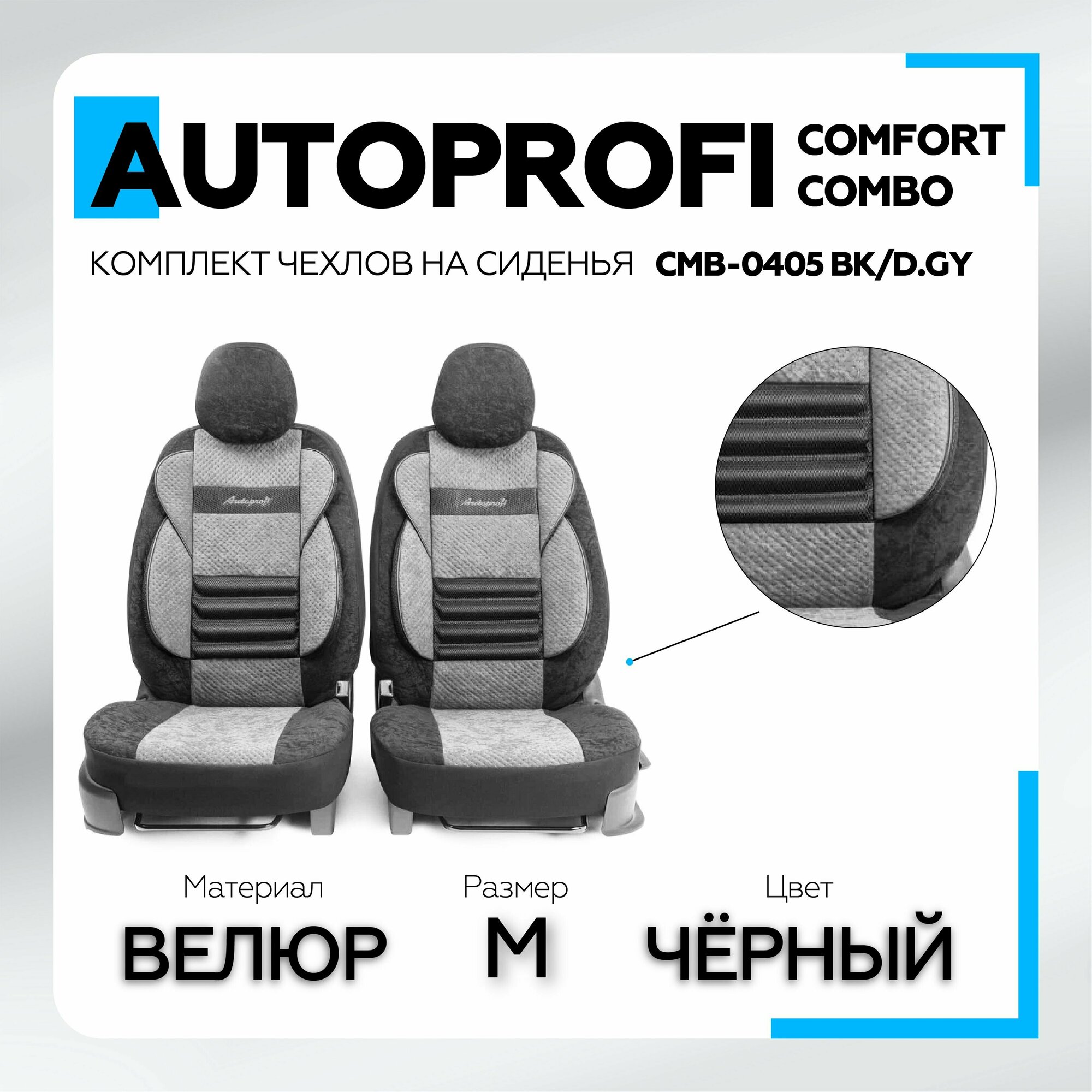 AUTOPROFI CMB0405BKDGY Чехы универсаьные перние AUTOPROFI COMFORT COMBO CMB-0405 BK/D.GY веюр чёрные/т-серые