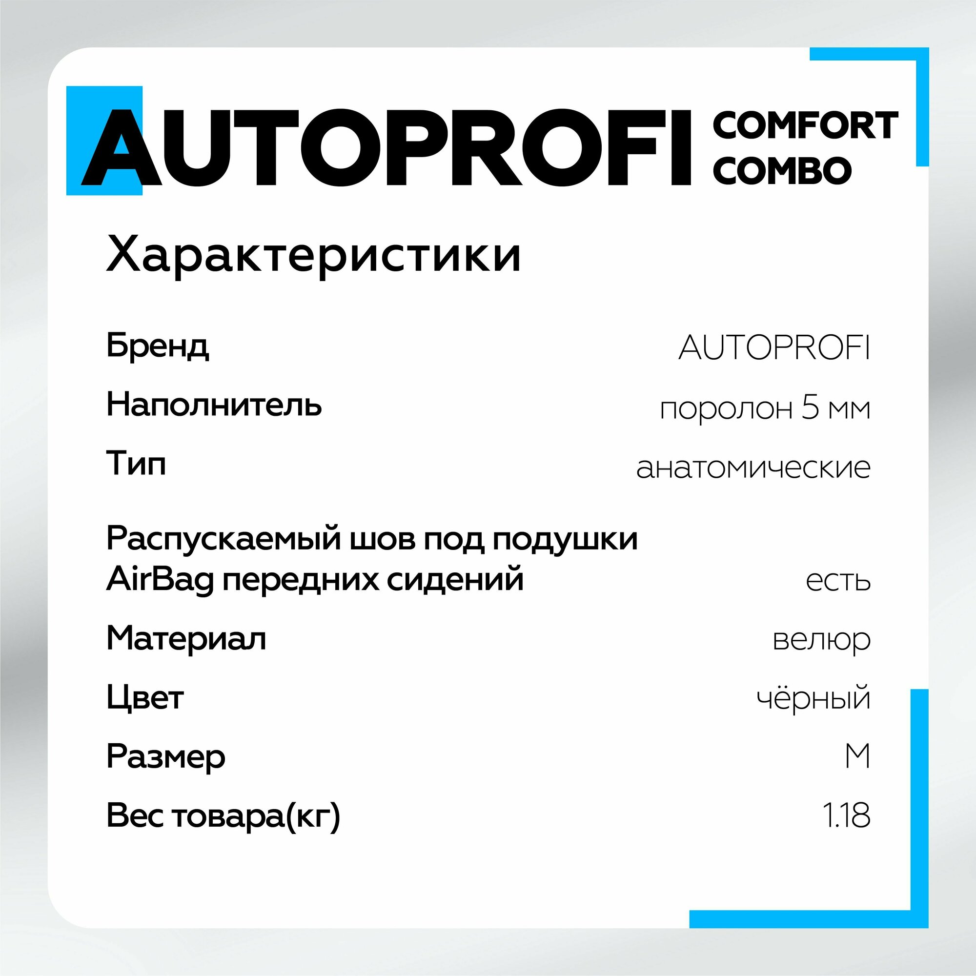 AUTOPROFI CMB0405BKBL Получехлы на передние сиденья COMFORT COMBO, формованный велюр, чёрн./синий