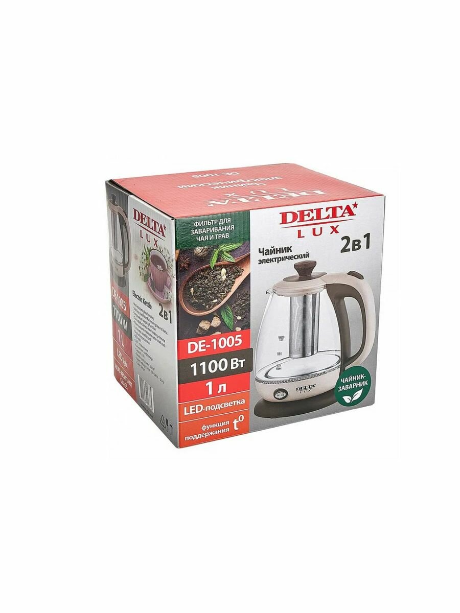 Купить Чайник электрический 1100 Вт, 1 л DELTA LUX DE-1005 бежевый, фильтр для чая, функция поддержания температуры