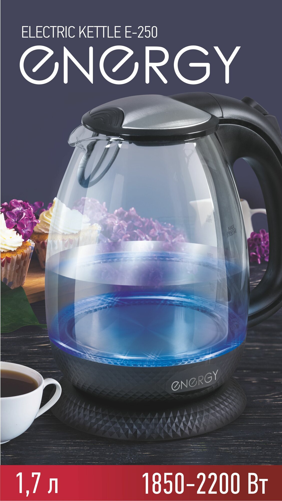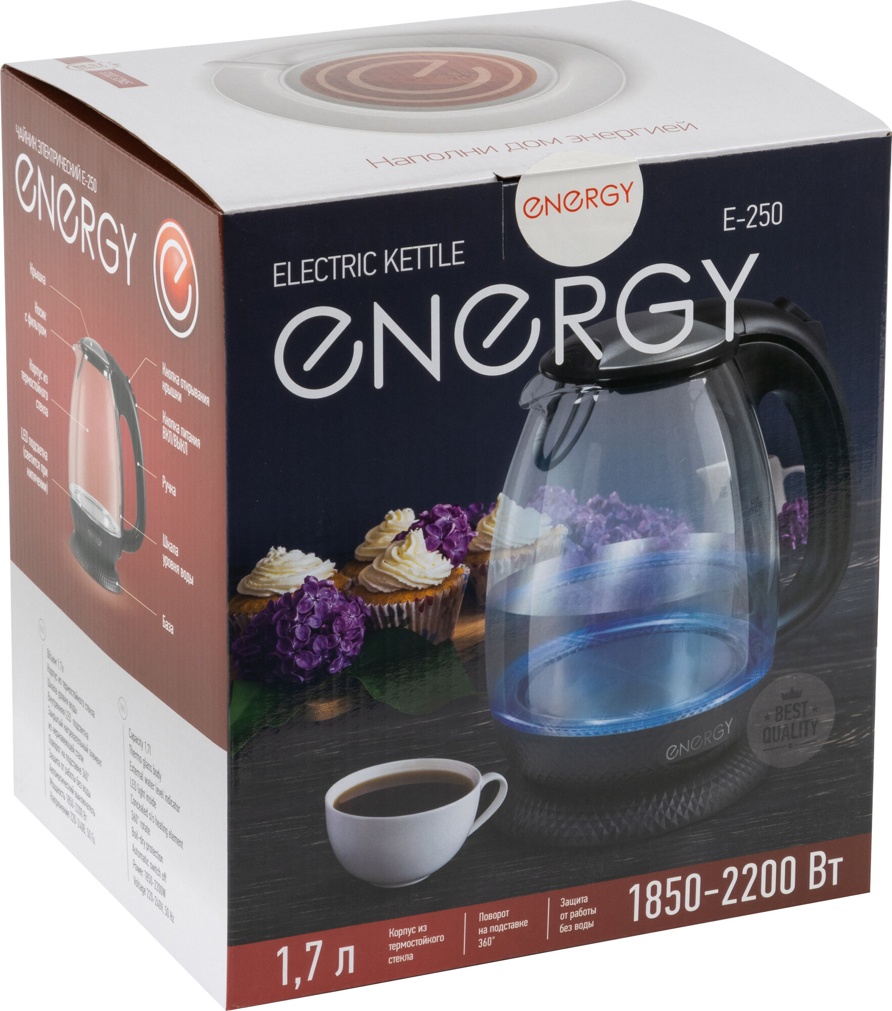 Купить Чайник ENERGY E-250 (1,7 л) стекло, пластик цвет черный (007122)