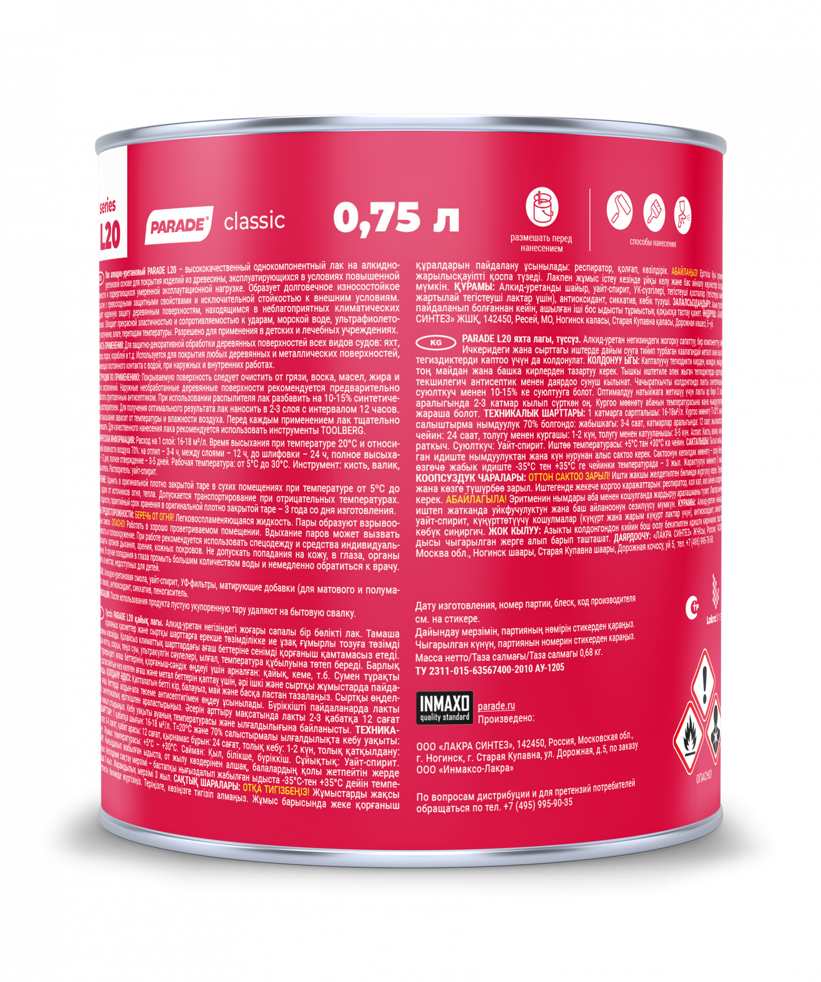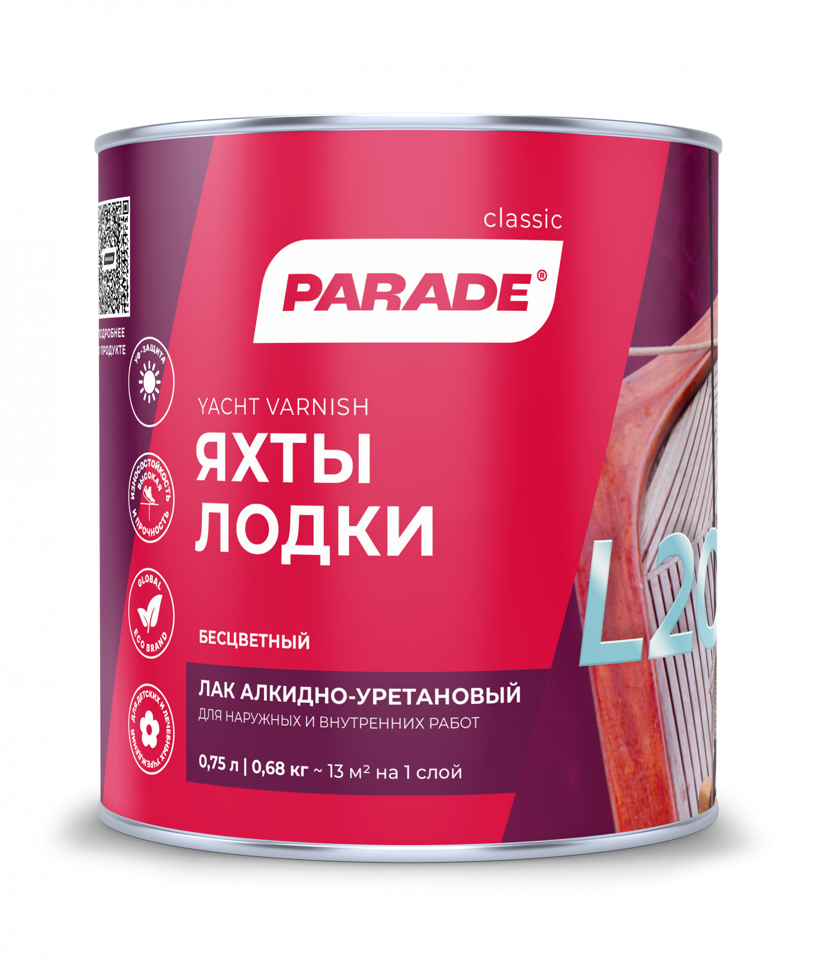Лак Яхтный Parade L20 Яхты & Лодки 0.75л Глянцевый, Алкидно-Уретановый / Парад Яхтный