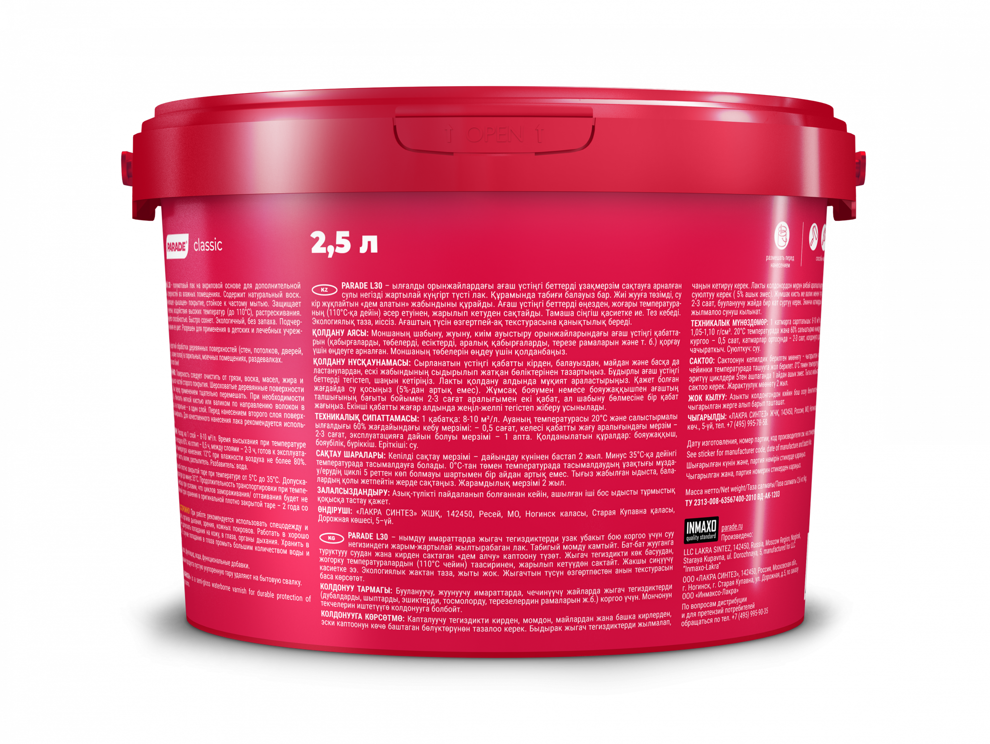 Лак Parade L30 Сауна & Баня бесцветный, полуматовая, 2.5 л