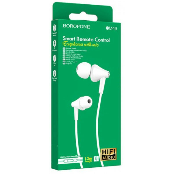 Наушники внутриканальные Borofone BM49, Player, кнопка ответа, кабель 1.2м, цвет: белый