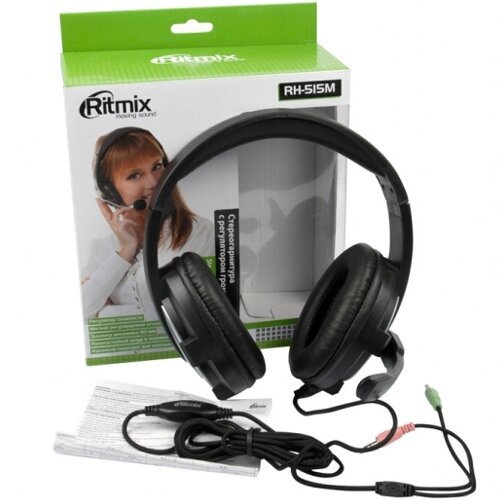 Купить Наушники с микрофоном Ritmix RH-515M полноразмерные, компьютерная гарнитура, кабель 2.4 метра, чёрная