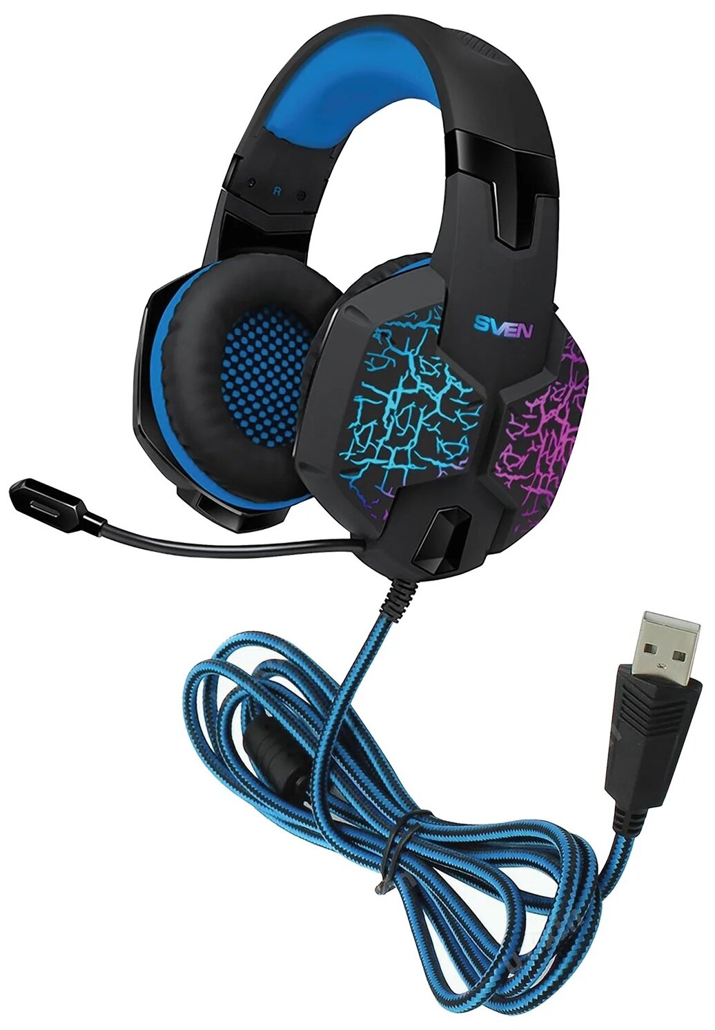 Гарнитура SVEN, наушники, наушники игровые, с подсветкой, USB, черный-синий