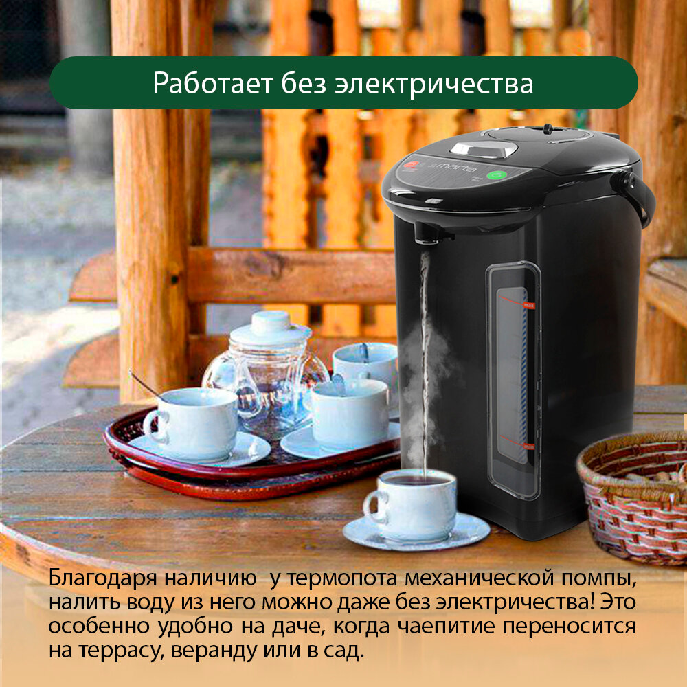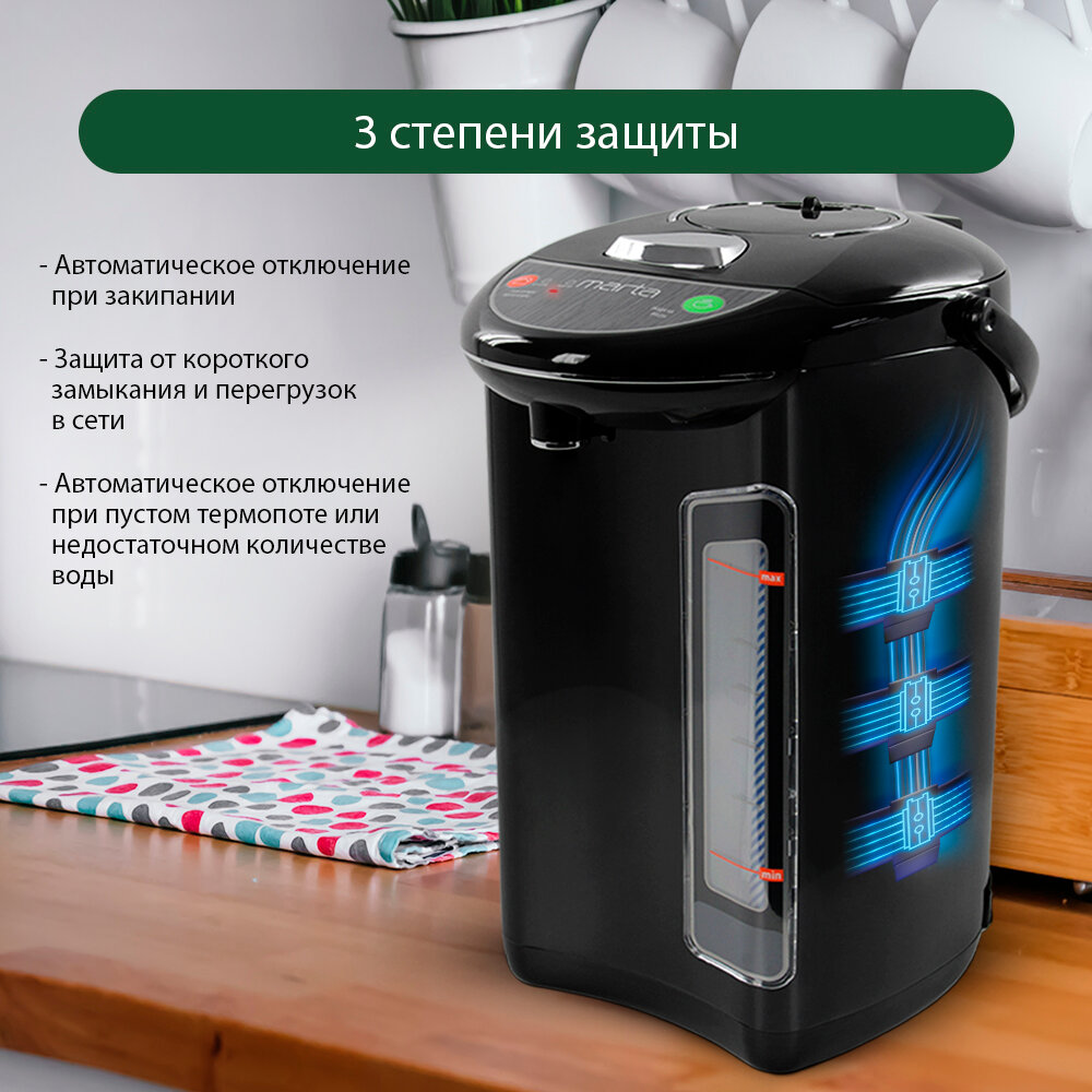Термопот Marta MT-2001 черный жемчуг кипячение - 750 Вт, подогрев - 30 Вт, емкость 4,5Л, 304 сталь, .
