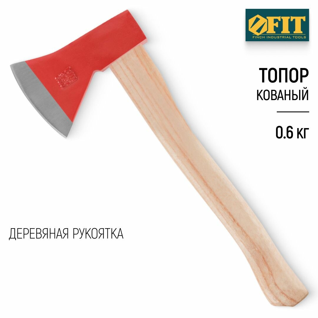 Топор кованая FIT 46006 усиленная сталь, деревянная ручка 600 гр.
