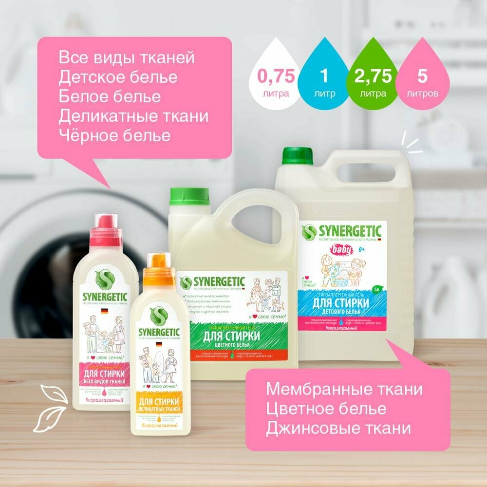 Гель для стирки всех видов тканей Synergetic, 0,75 л