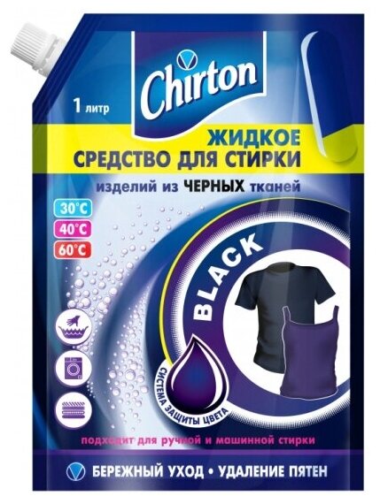 Средство для стирки черных тканей Chirton / Чиртон жидкое дой-пак с дозатором гель 1л