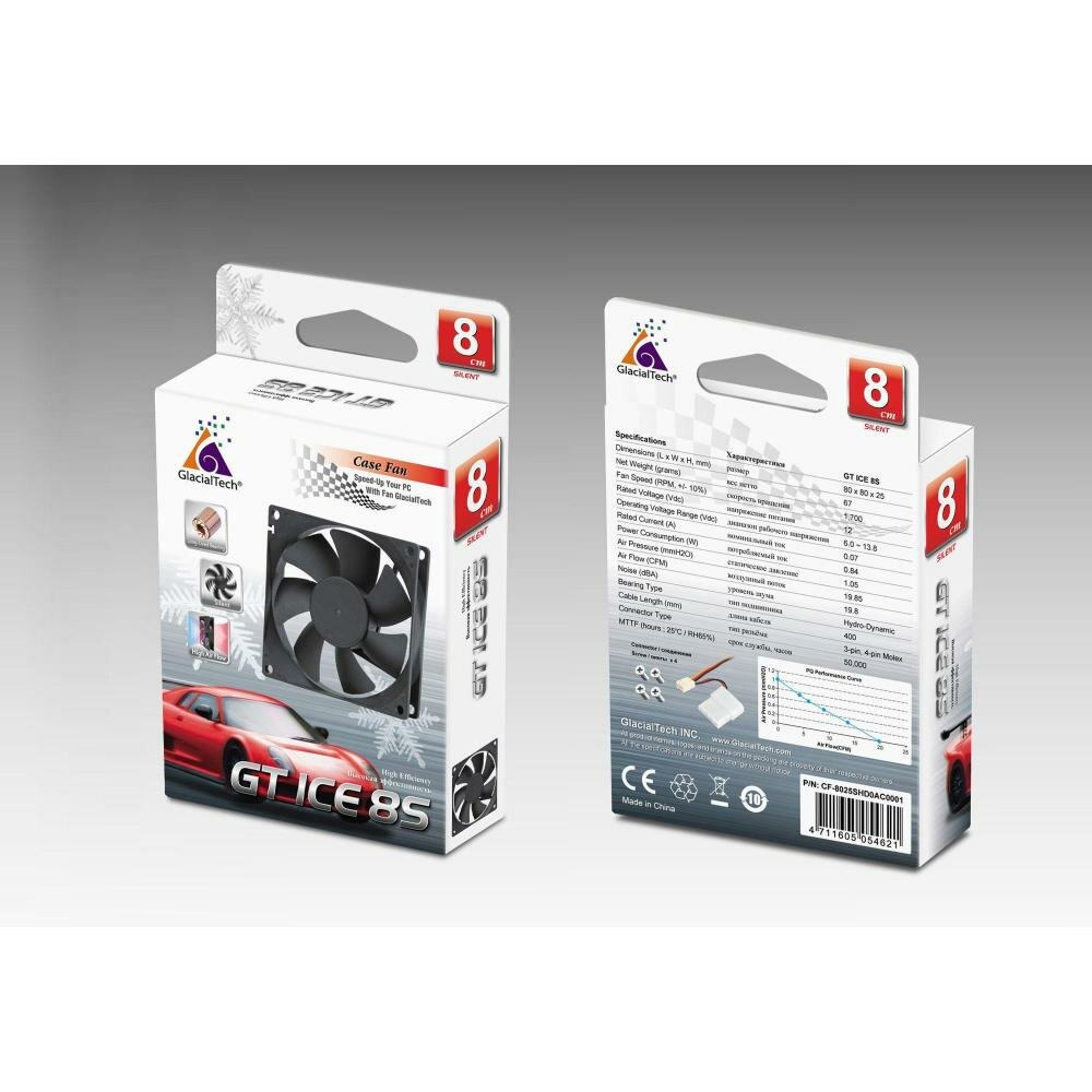 Вентилятор Glacialtech GT ICE 8S 80x80x25mm 3-pin 4-pin (Molex)20dB 67gr Ret CF-8025SHD0AC0001 .