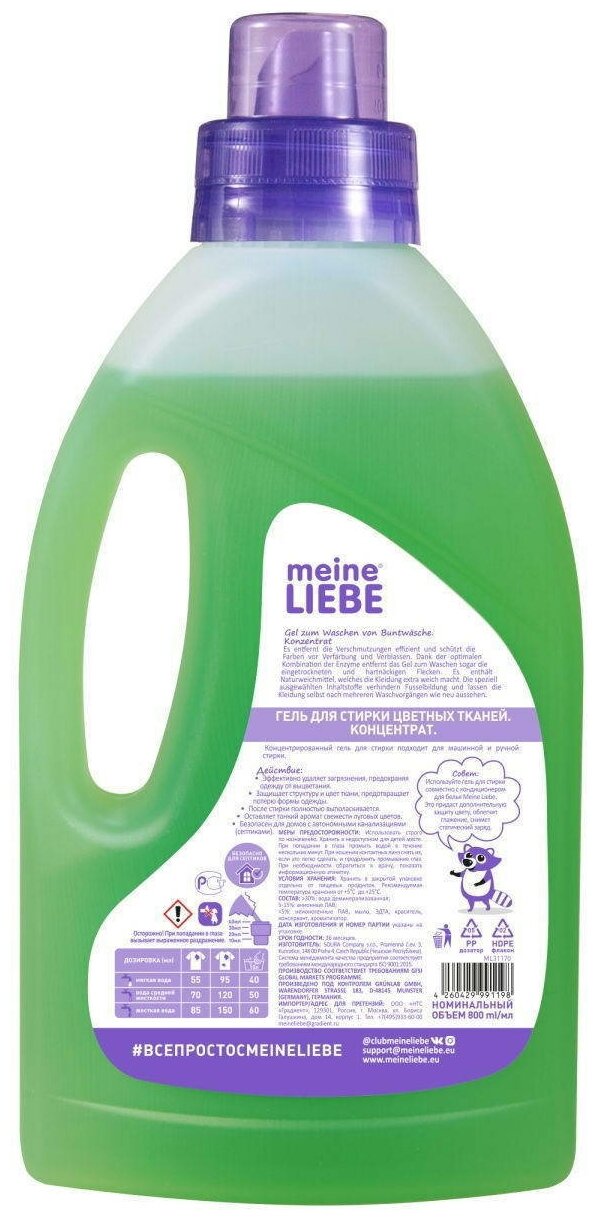 Гель Meine Liebe для цветных тканей, 0.8 л, бутылка