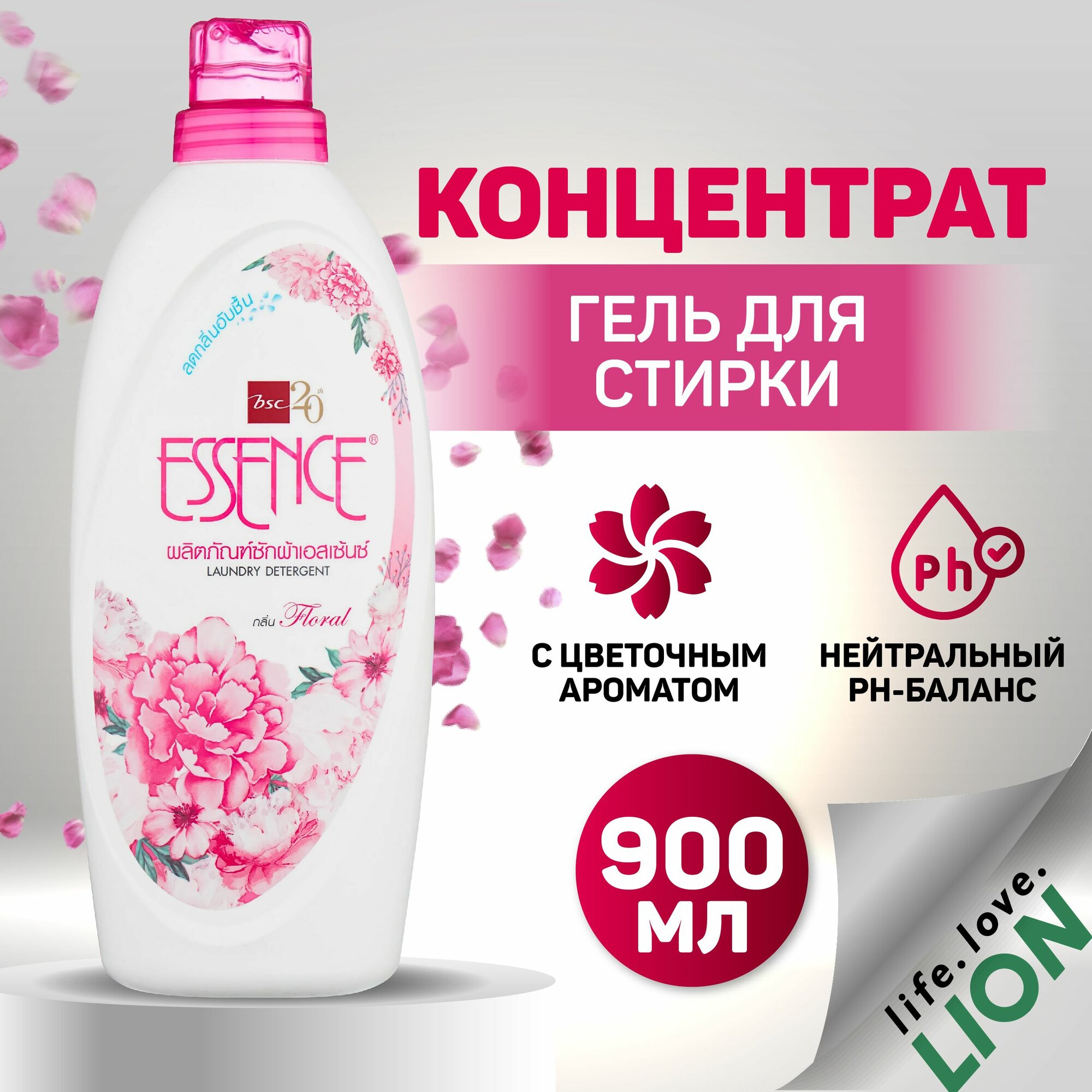 Купить LION Essence Концентрированный гель для стирки белья Цветочная фантазия, флакон, 900 мл