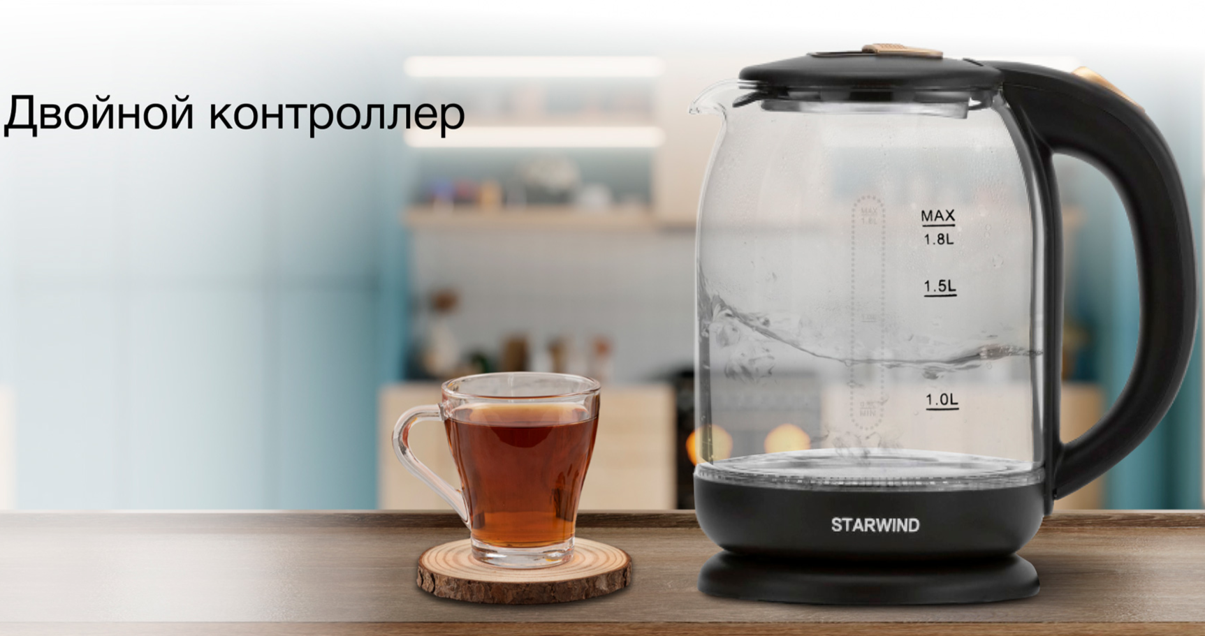 Чайник STARWIND SKG4777 черный/серебристый стекло