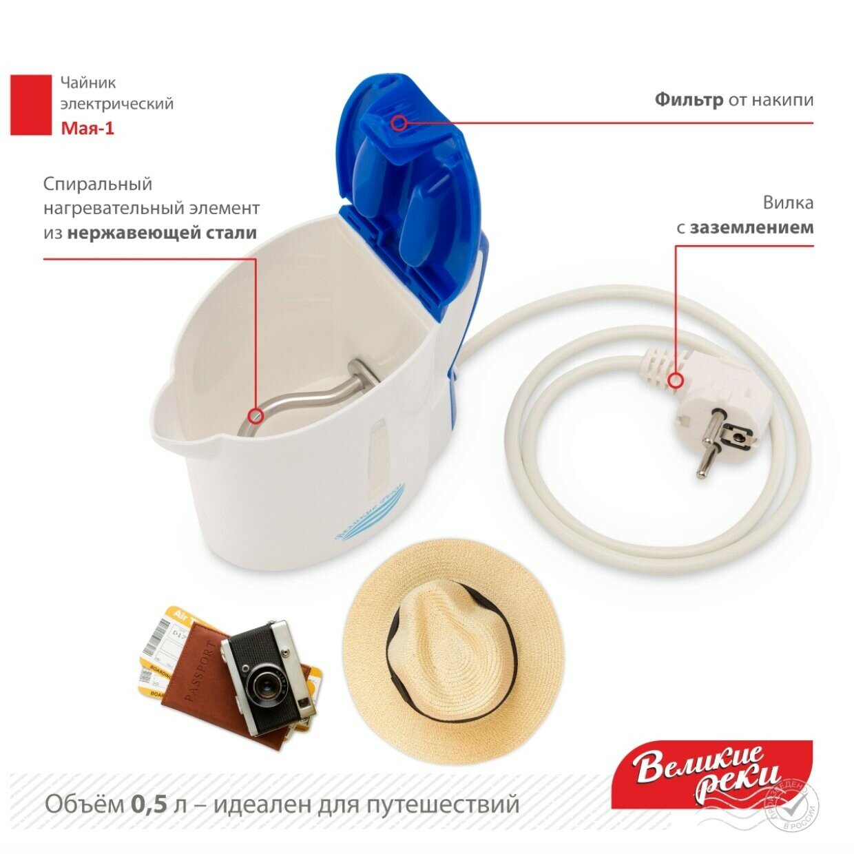 Чайник электрический великие реки Мая-1 0,5 л, 500 Вт, бело-синий
