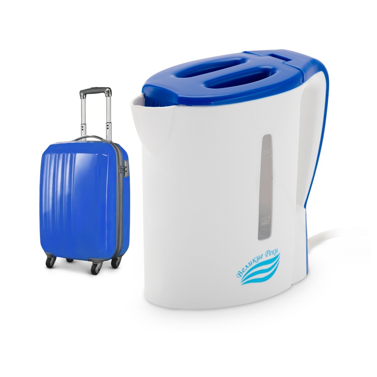 Чайник Великие Реки Мая-1 бело-синий, 0,5 л, пластик, 500 Вт