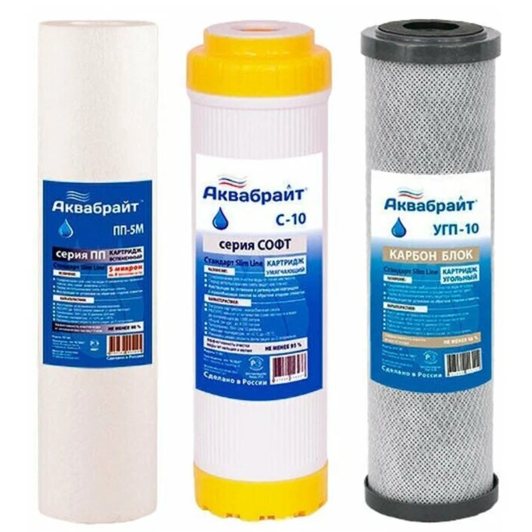 Комплект картриджей Аквабрайт К-2 умягчение, Slim Line, 3 шт