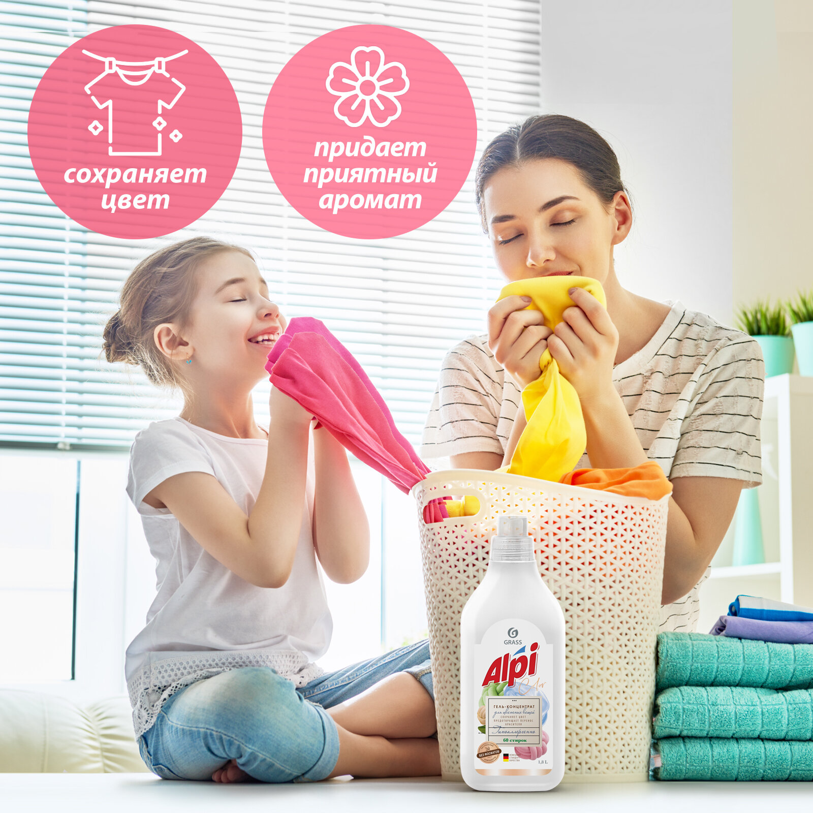 Гель для стирки цветных тканей Grass / Грасс Alpi жидкий концентрат гипоаллергенный без фосфатов в бутылке с флаконом 2.5л / средство для белья