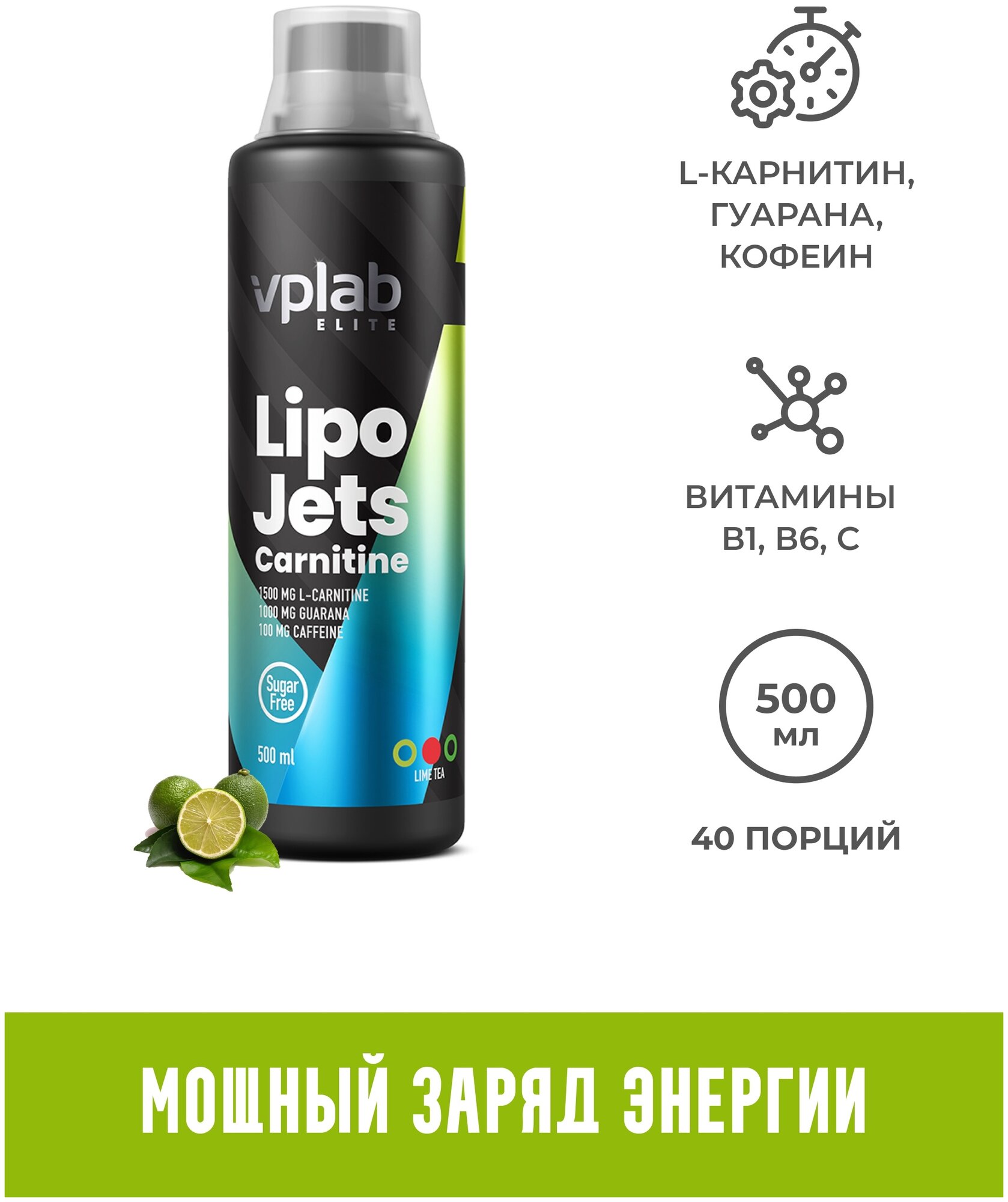 Купить VPLab Nutrition LipoJets Carnitine, лаймовый чай, 500 мл, VPLab
