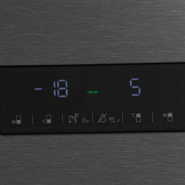 Красивый дизайн, на двери находится дисплей, отображающий температуру внутри морозильной и холодильной камер.