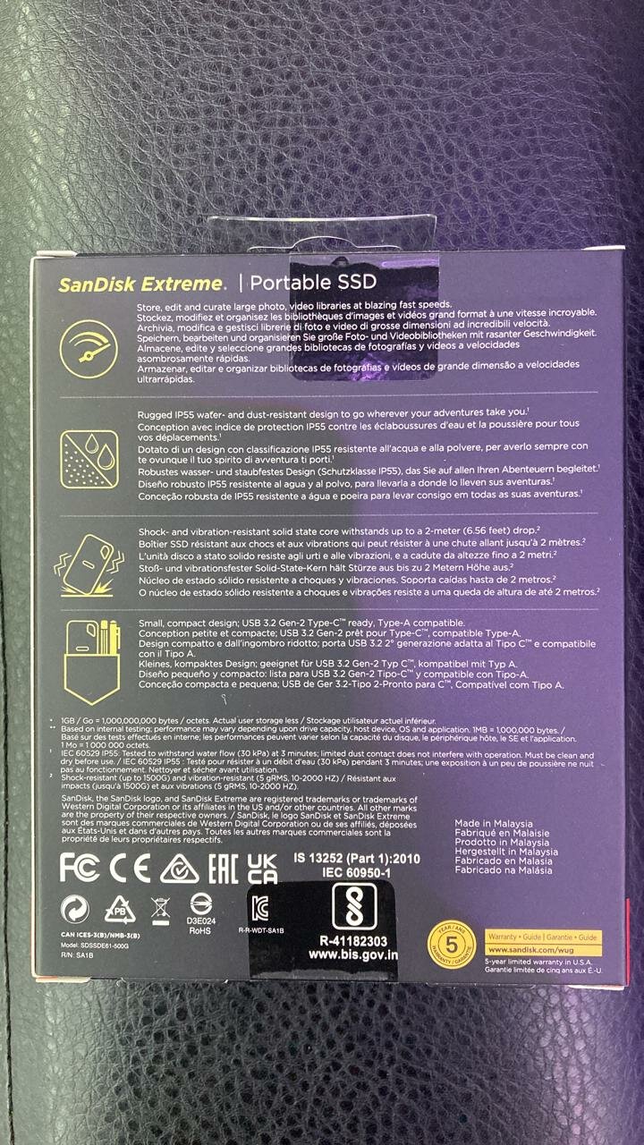 Ниже Вы можете прочитать отзывы на 500 ГБ Внешний SSD SanDisk Extreme Portable V2, USB 3.2 Gen 2 Type-C, черный, ознакомится с подробными характеристиками, посмотреть интересные обзоры и фотографии на 500 ГБ Внешний SSD SanDisk Extreme Portable V2, USB 3.2 Gen 2 Type-C, черный.