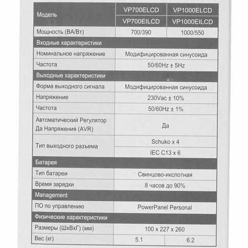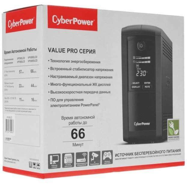 СохранитьИсточник бесперебойного питания Cyberpower VP1000ELCD Line-Interactive 1000VA/550W интересное: