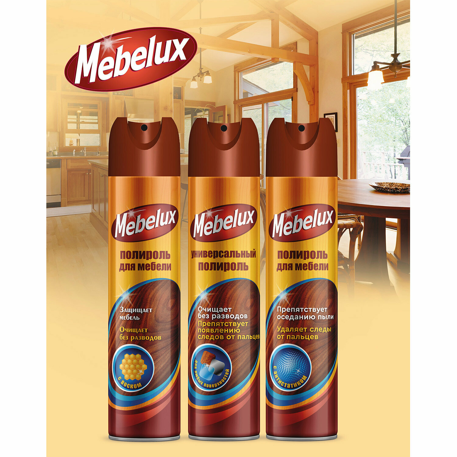 Комплект 7 шт, Полироль для мебели Mebelux для любых поверхностей 300 см3