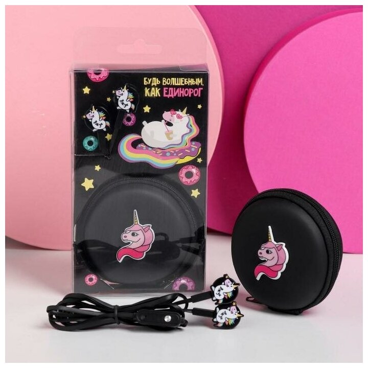 Набор наушники вакуумные с гарнитурой и чехол «Единорог», 26,2 х 24,5 см