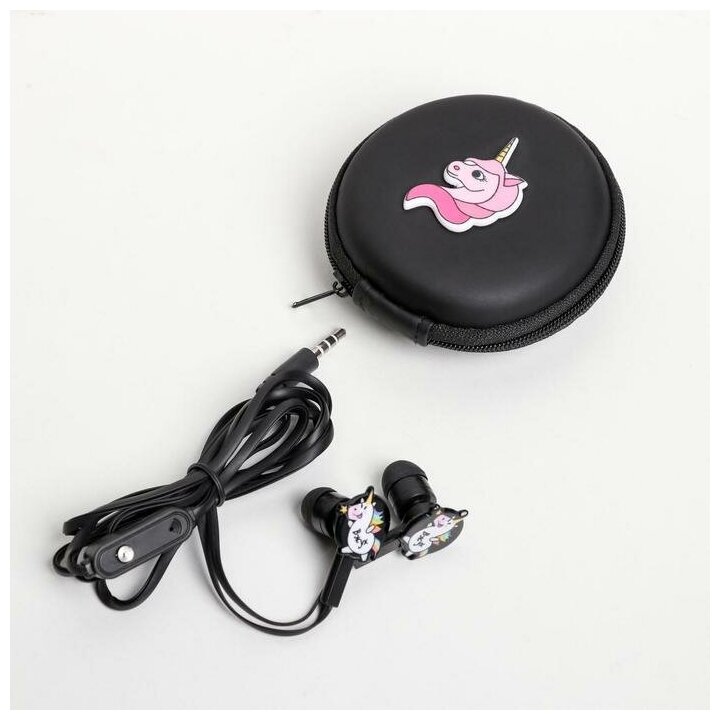 Набор наушники вакуумные с гарнитурой и чехол «Единорог», 26,2 х