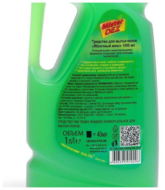 Ниже Вы можете прочитать отзывы на Mister DEZ Средство для мытья полов Mister Dez Eco-Cleaning "Яблочный микс", 1 л, ознакомится с подробными характеристиками, посмотреть интересные обзоры и фотографии на Mister DEZ Средство для мытья полов Mister Dez Eco-Cleaning "Яблочный микс", 1 л.
