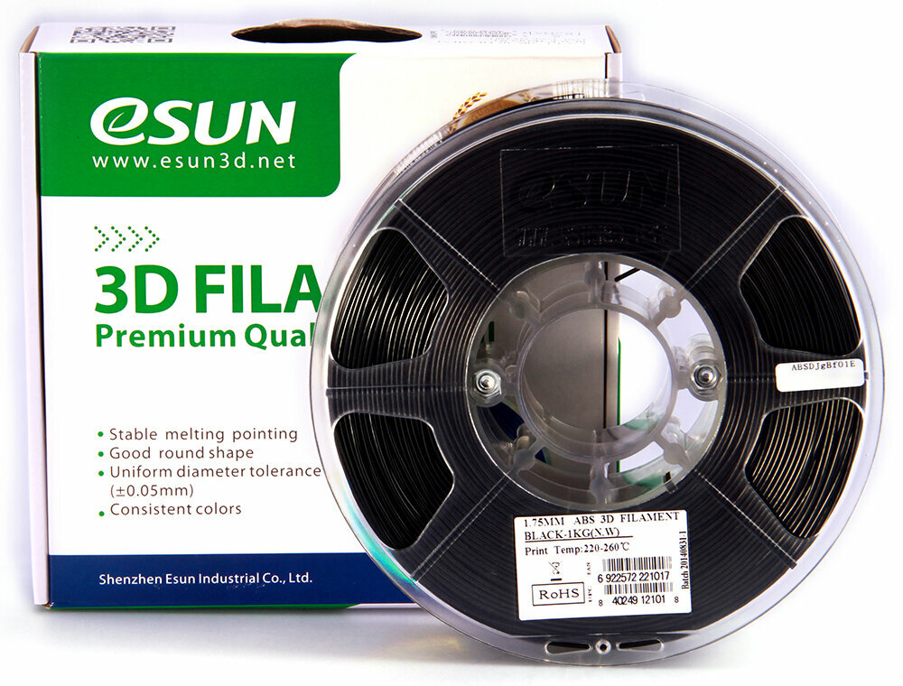 Ниже Вы можете прочитать отзывы на Катушка ABS+ пластика ESUN 1.75 мм 1кг., черная (ABS+175B1), ознакомится с подробными характеристиками, посмотреть интересные обзоры и фотографии на Катушка ABS+ пластика ESUN 1.75 мм 1кг., черная (ABS+175B1).