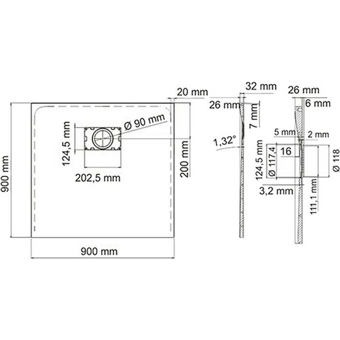 WasserKRAFT Душевой поддон из стеклопластика WasserKRAFT Main 90x90 41T03 с сифоном и трапом