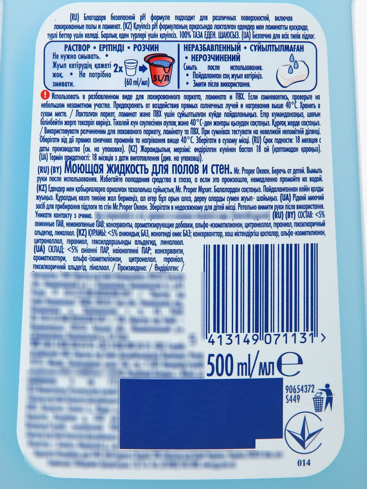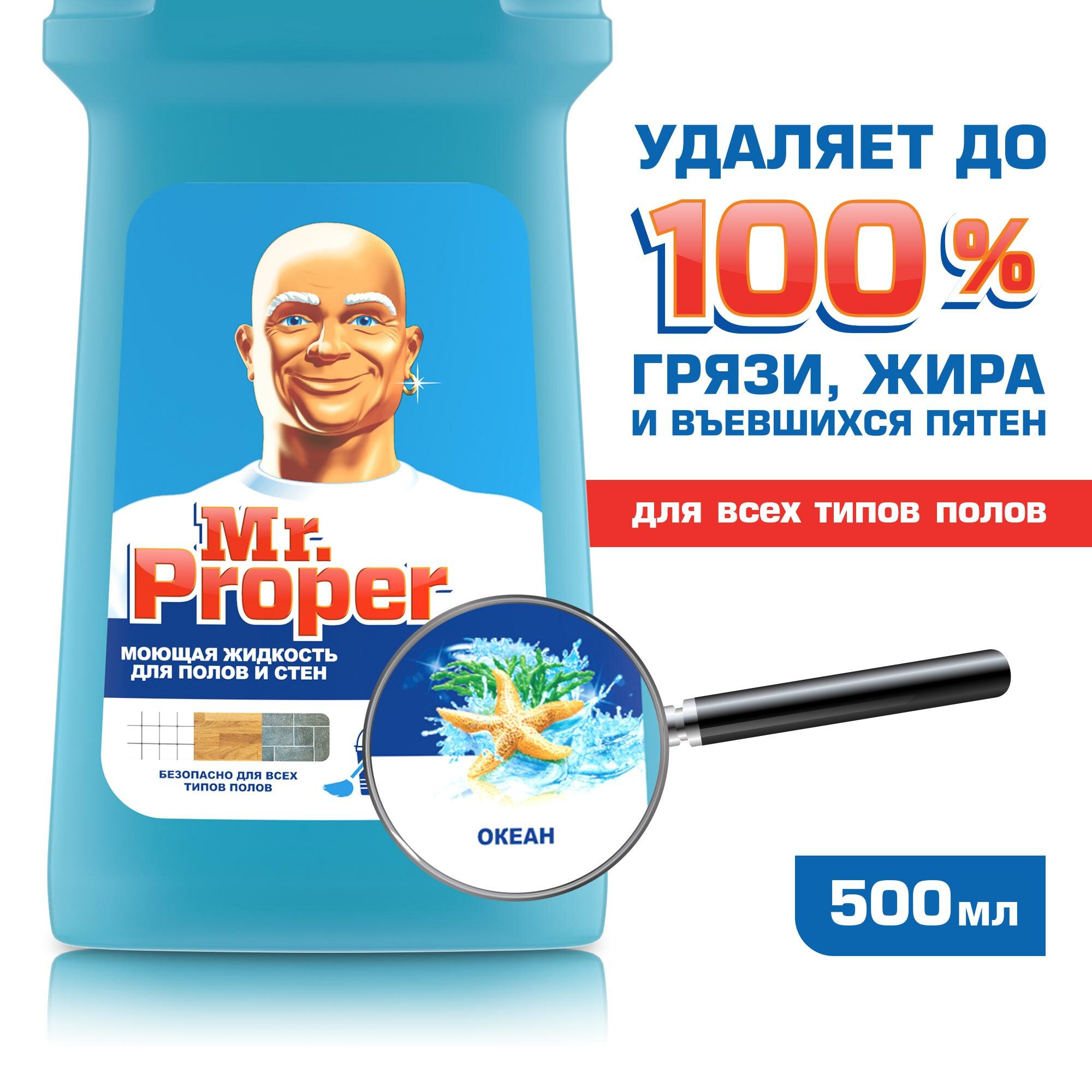 Средство для мытья пола и стен Mr. Proper 500 мл, "Океан" ()