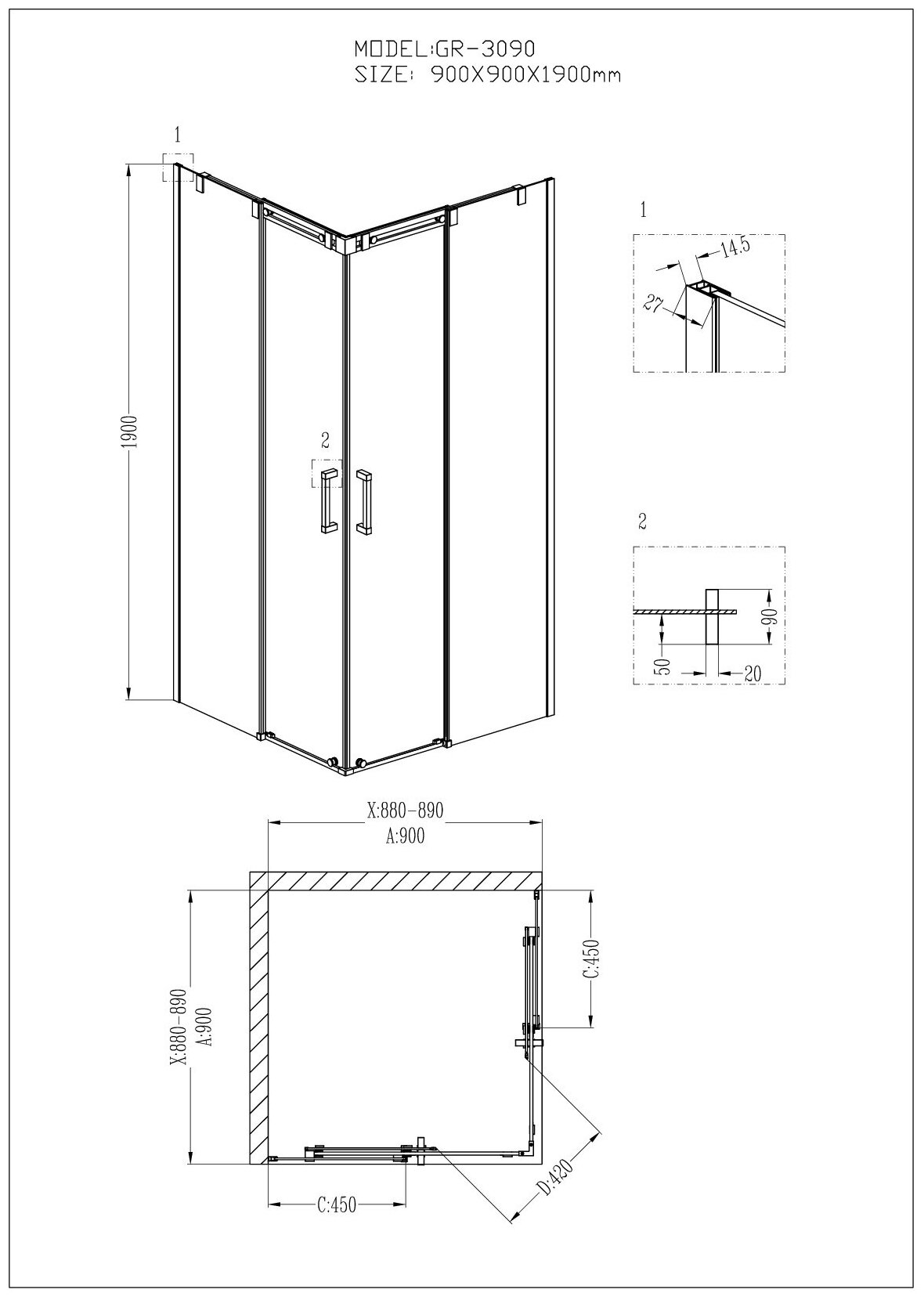 Душевое ограждение Grossman Galaxy GR-3090 90х90