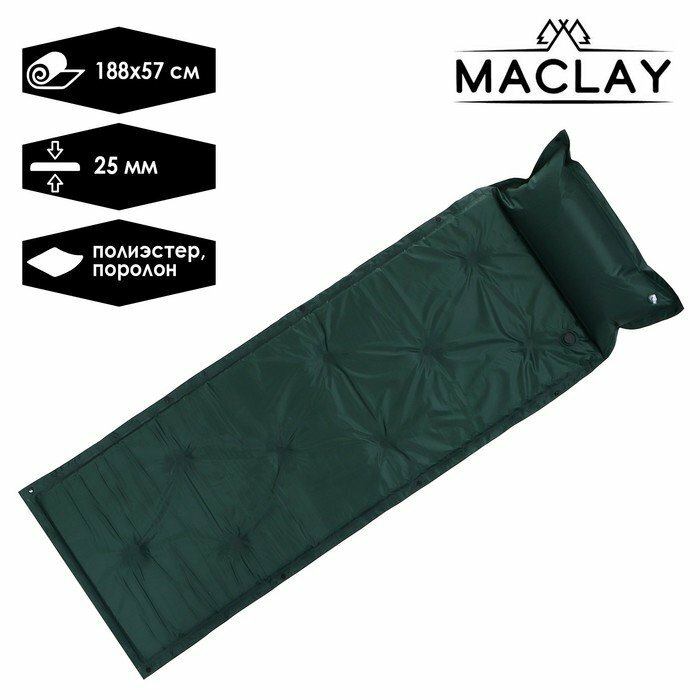 Коврик туристический maclay, самонадувающийся, 188х57х2.5 см, цвет зелёный