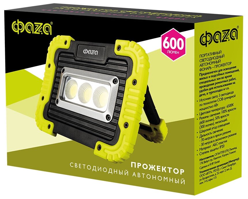 Фонарь-прожектор автономный ФАZА WL1-L6W-gn, черный/зеленый интересное:
