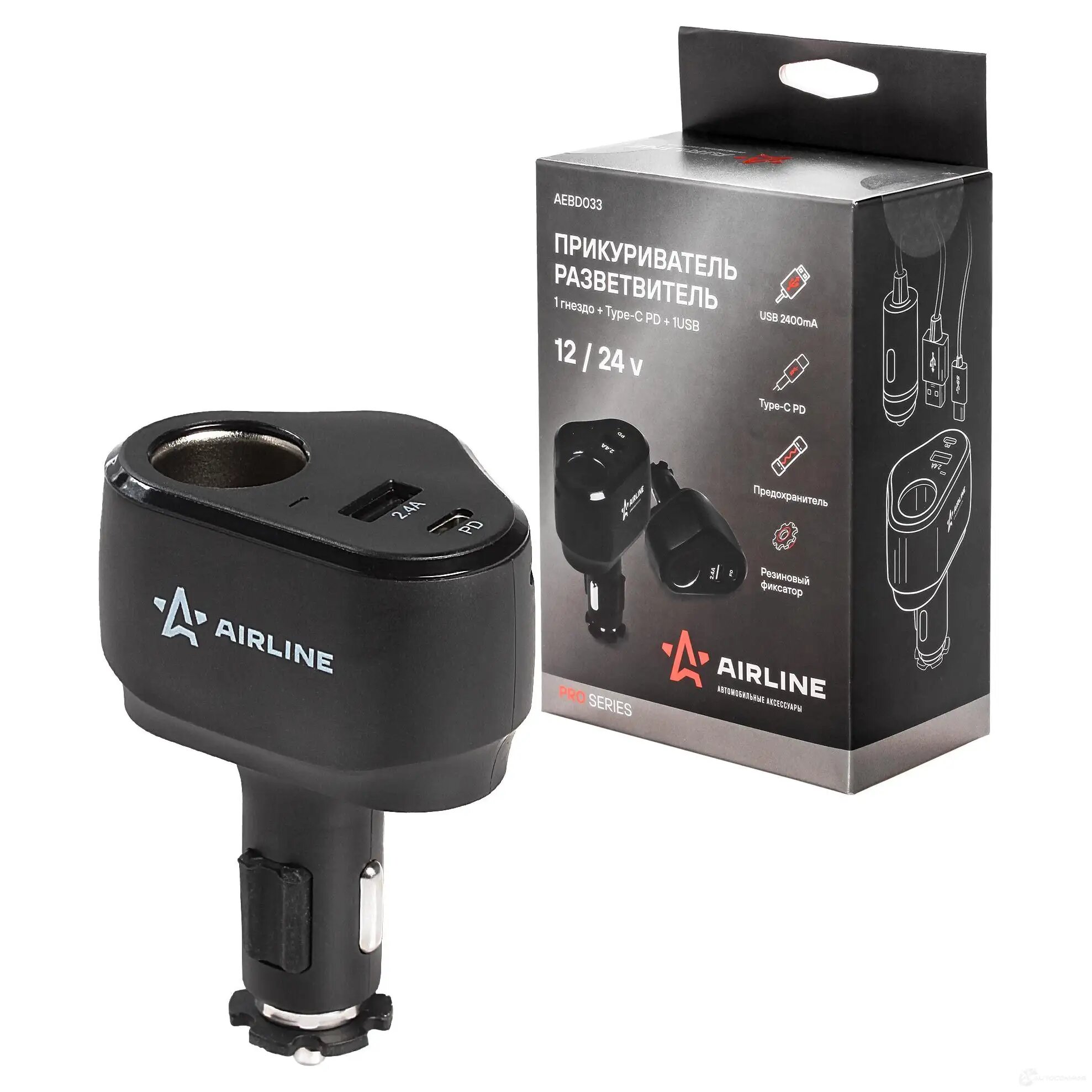 Купить AEBD033 AIRLINE Разветвитель прикуривателя 1 гнездо + Type-C PD + 1USB 2.4A 30Вт PRO (AEBD033)