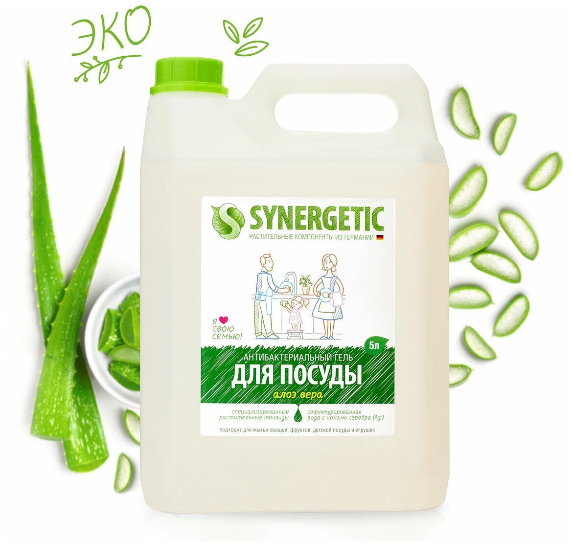 Synergetic Средство для мытья посуды Synergetic "Алоэ вера", с антибактериальным эффектом, 5 л